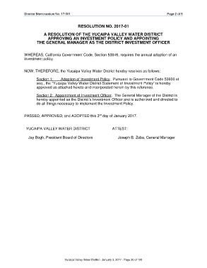 seq., the “Yucaipa Valley Water District Statement of Investment Policy” is hereby