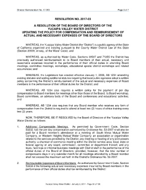 policy concerning the District’s reimbursement of the actual and necessary expenses of Board
