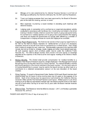 be filed by the District’s Board members for reimbursement of actual and necessary