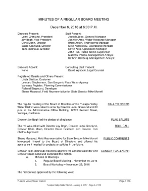 1. Regular Board Meeting – November 15, 2016
