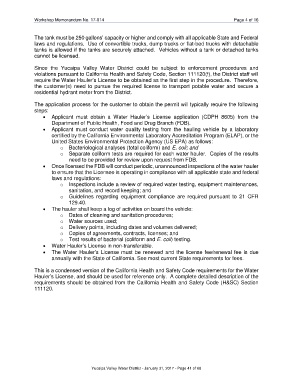 • Applicant must obtain a Water Hauler’s License application (CDPH 8605) from the