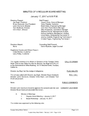 1. Regular Board Meeting – January 3, 2017